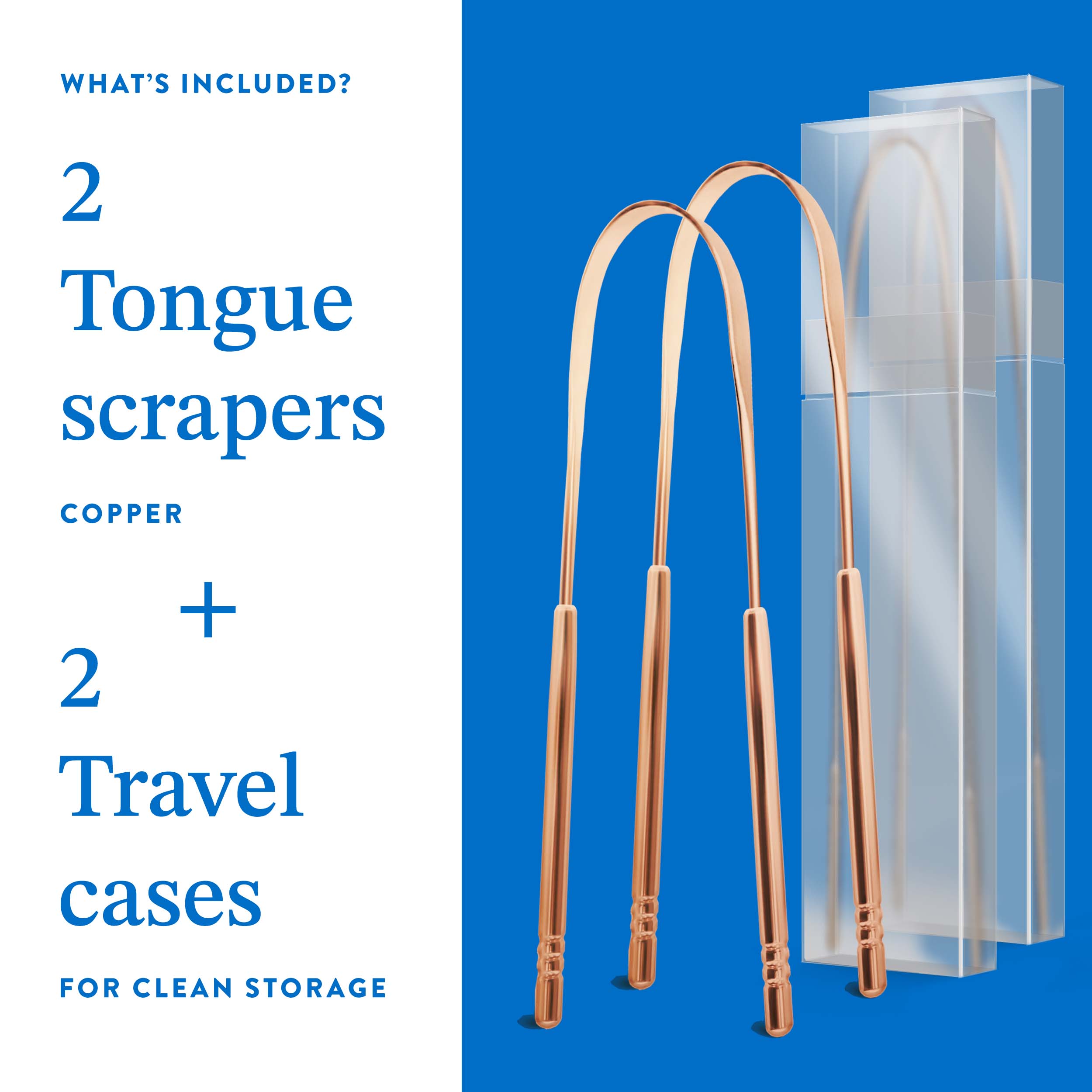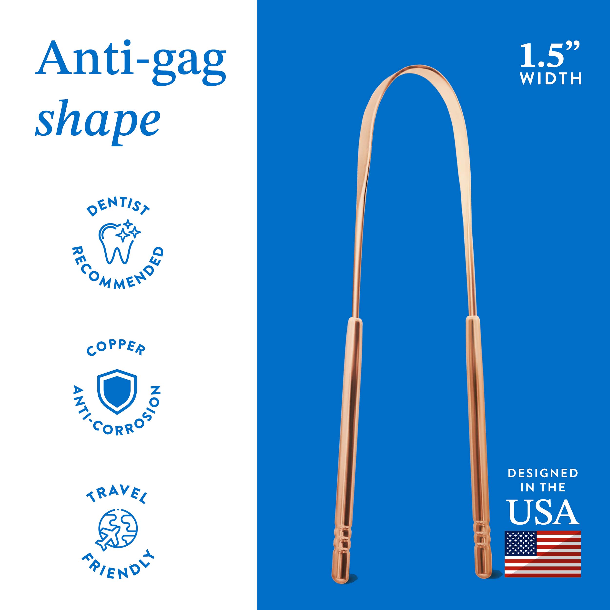 Copper is a durable metal that can withstand regular use without wearing out quickly. Clean your tongue cleaner in seconds with these high quality, copper stainless steel tongue scrapers. Copper tounge scrappers are typically designed with a smooth and efficient scraping edge that effectively removes debris. These tongue scrapers don't contain harmful chemicals that could leach out over time. You'll want the best tongue scrapers for adults for maximum tongue scraper cleaner!