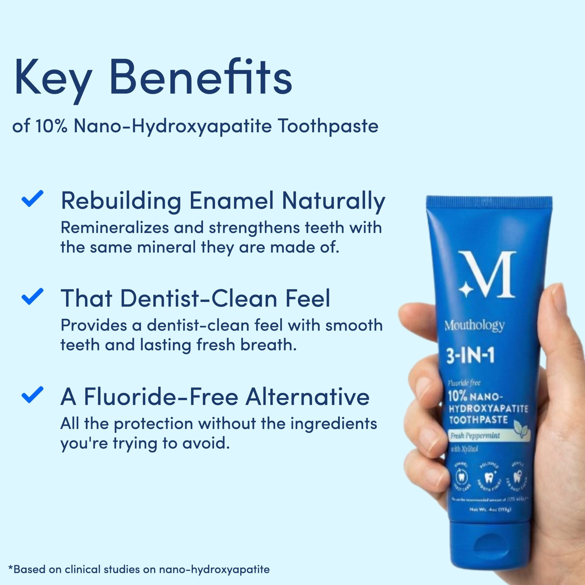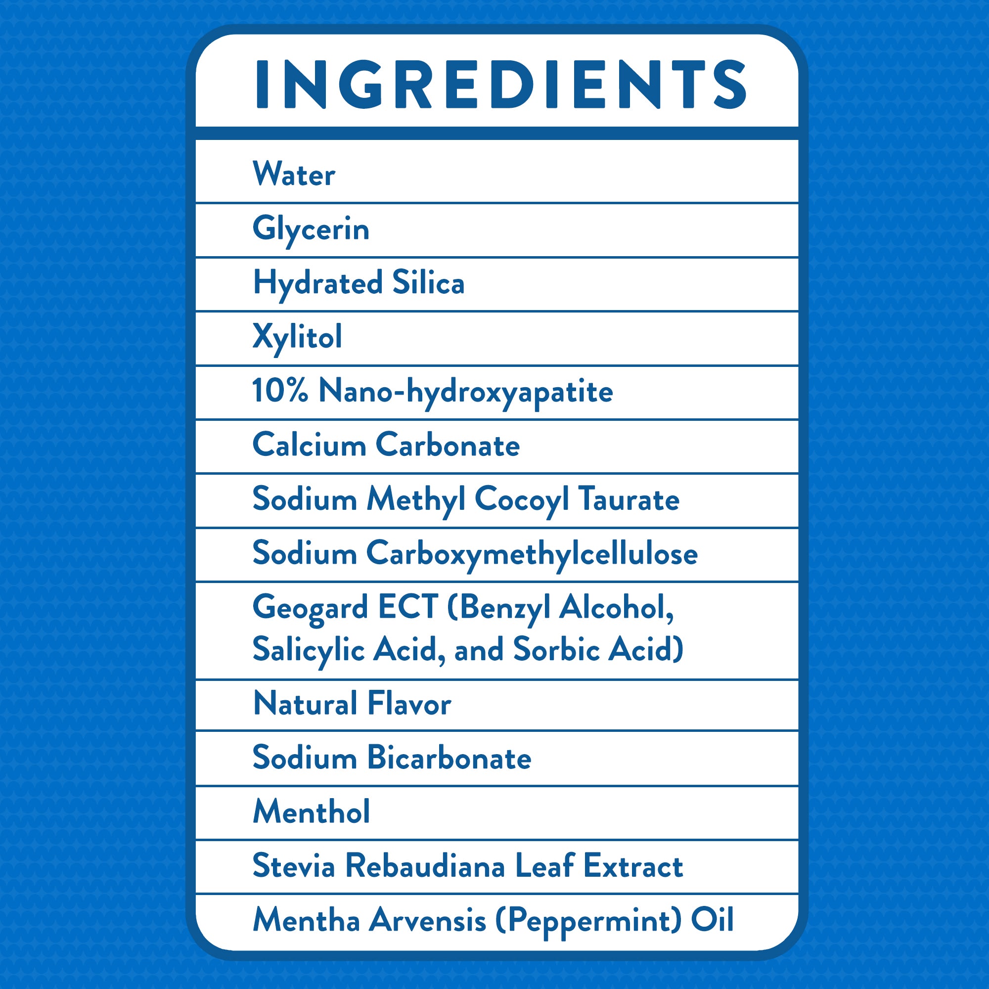 Nano-hydroxyapatite fills in microscopic cracks and weak spots in your enamel, making teeth stronger with every brush. Say goodbye to sensitivity