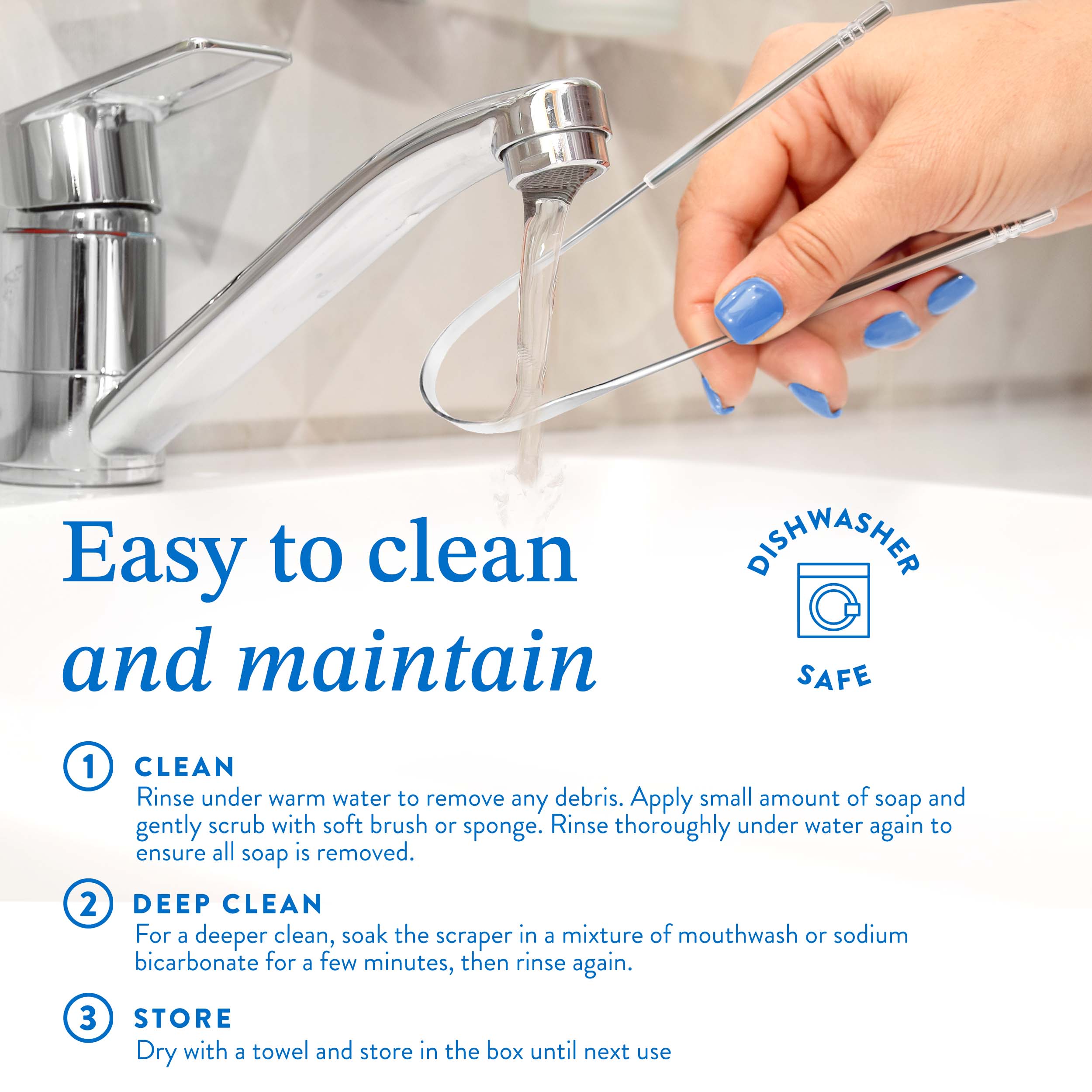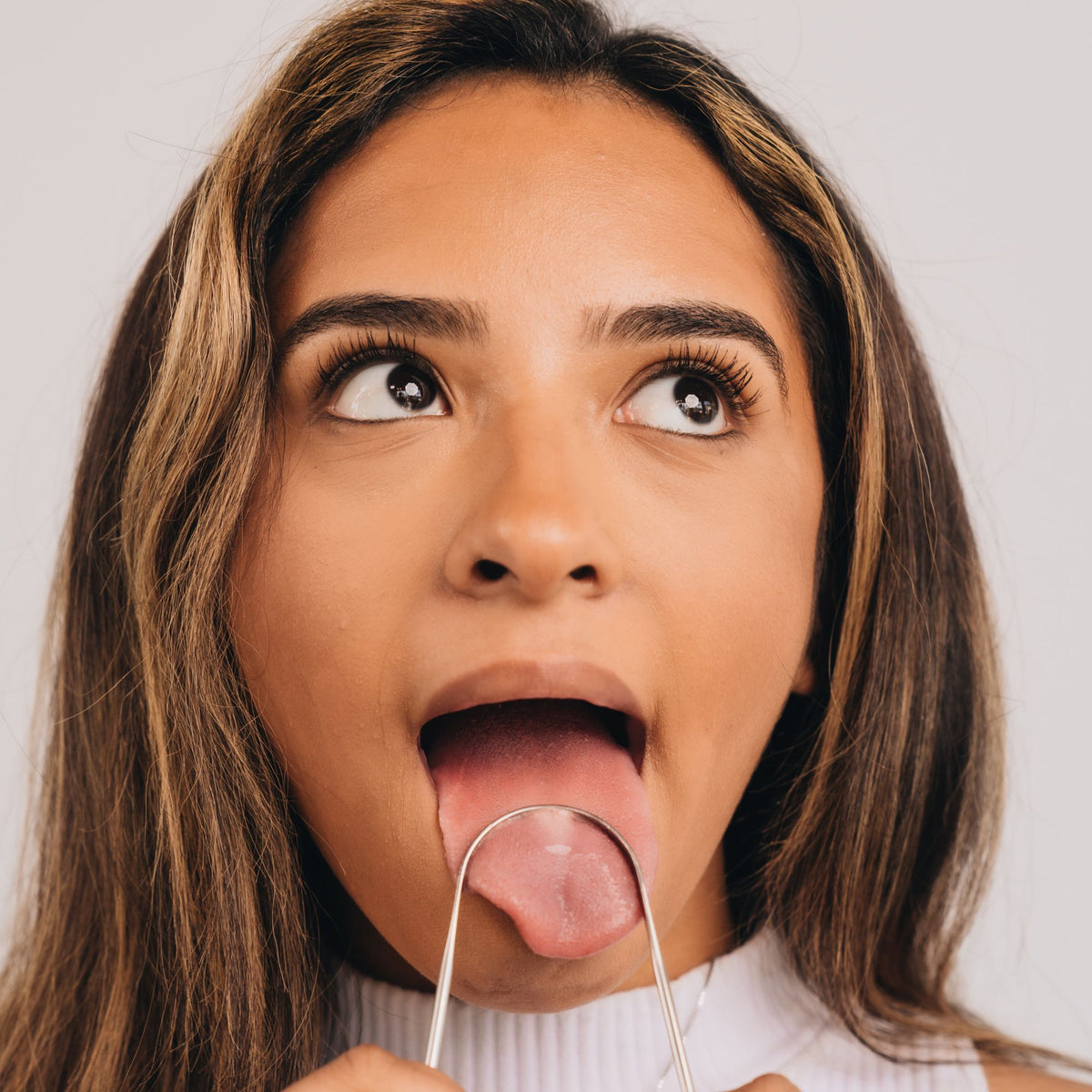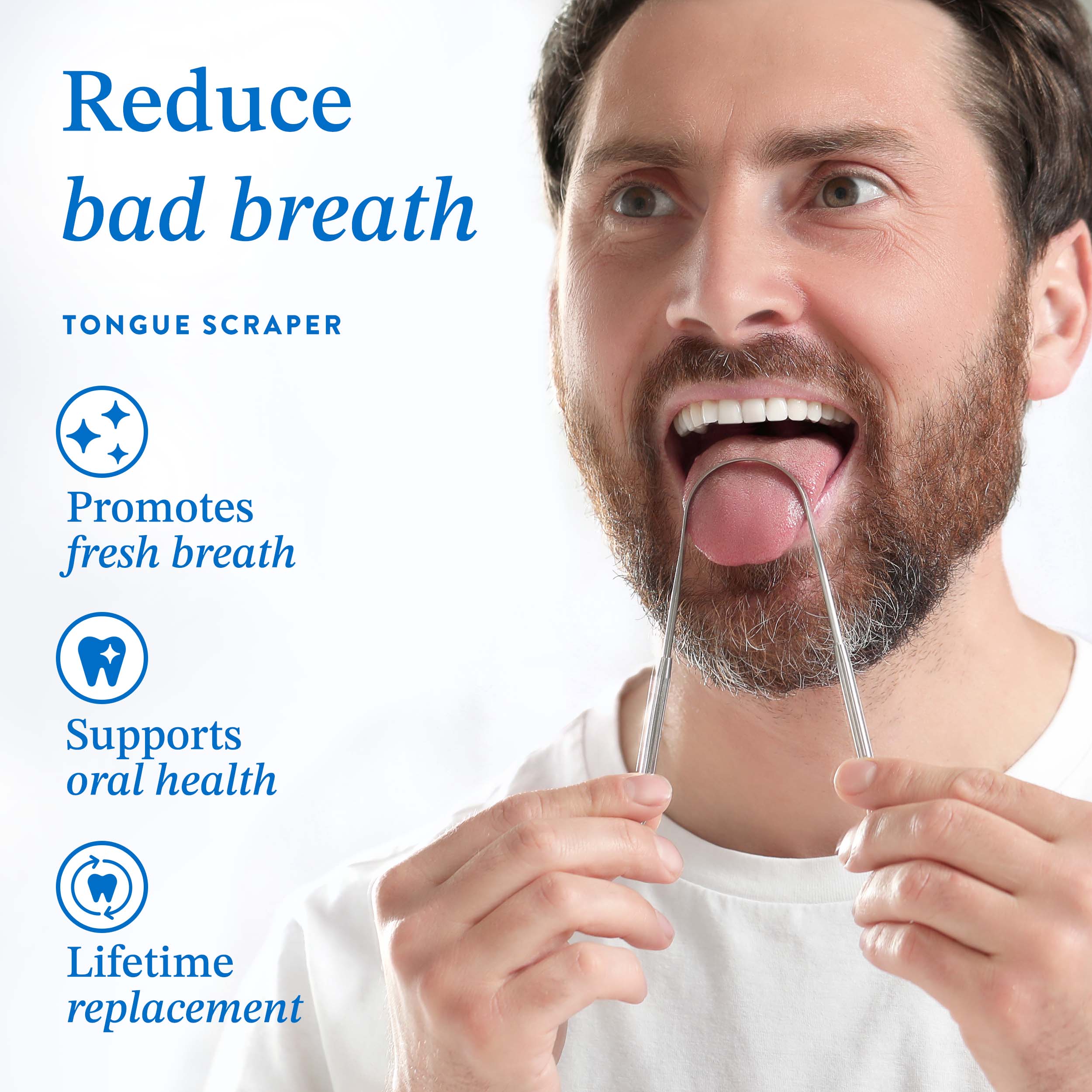 Removes the bacteria-filled film on your tongue that causes most bad breath. One scrape in the morning = confidence all day long.
