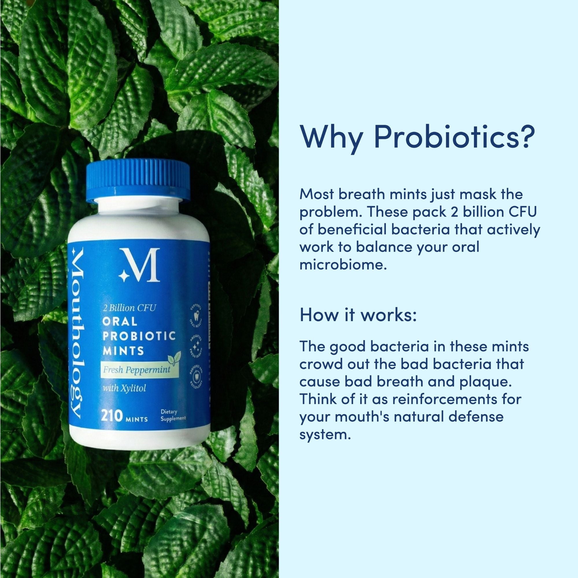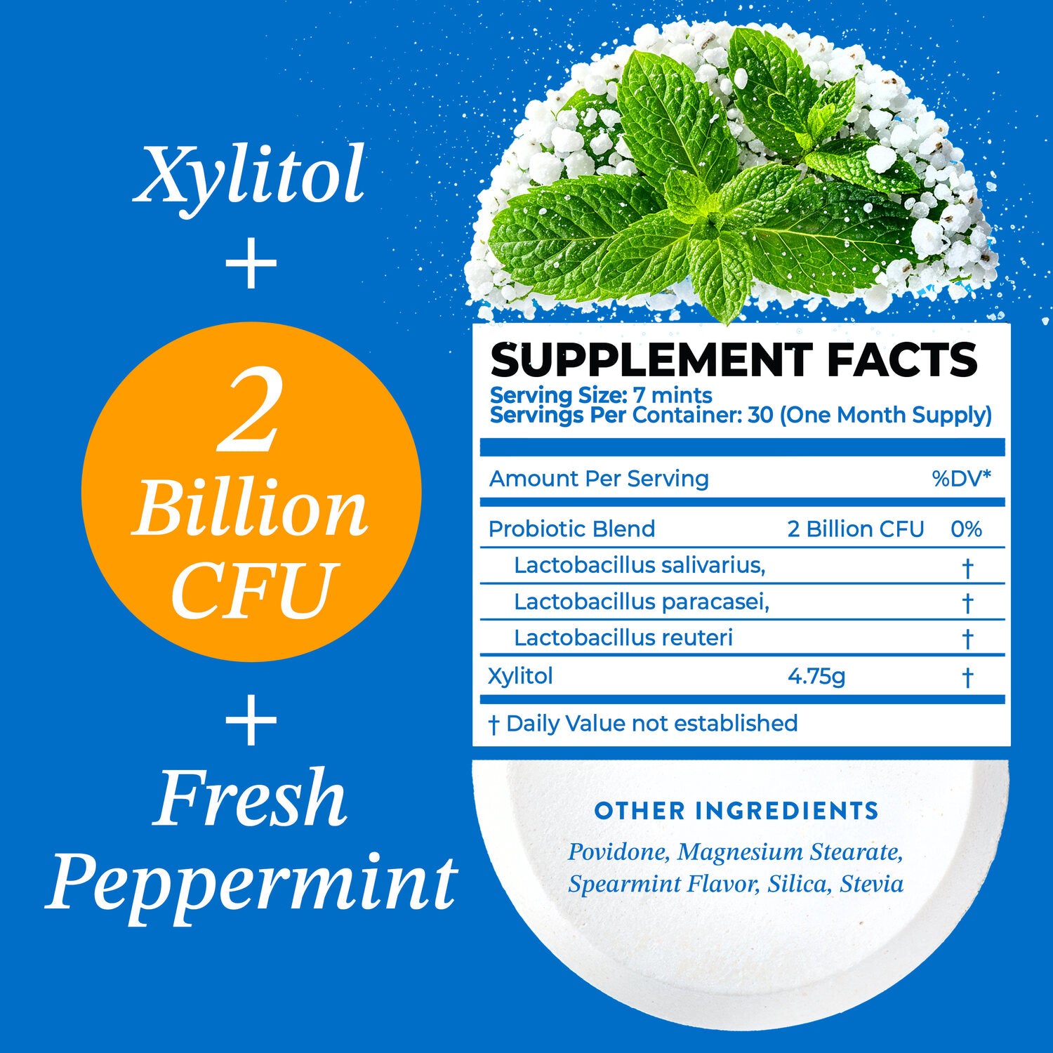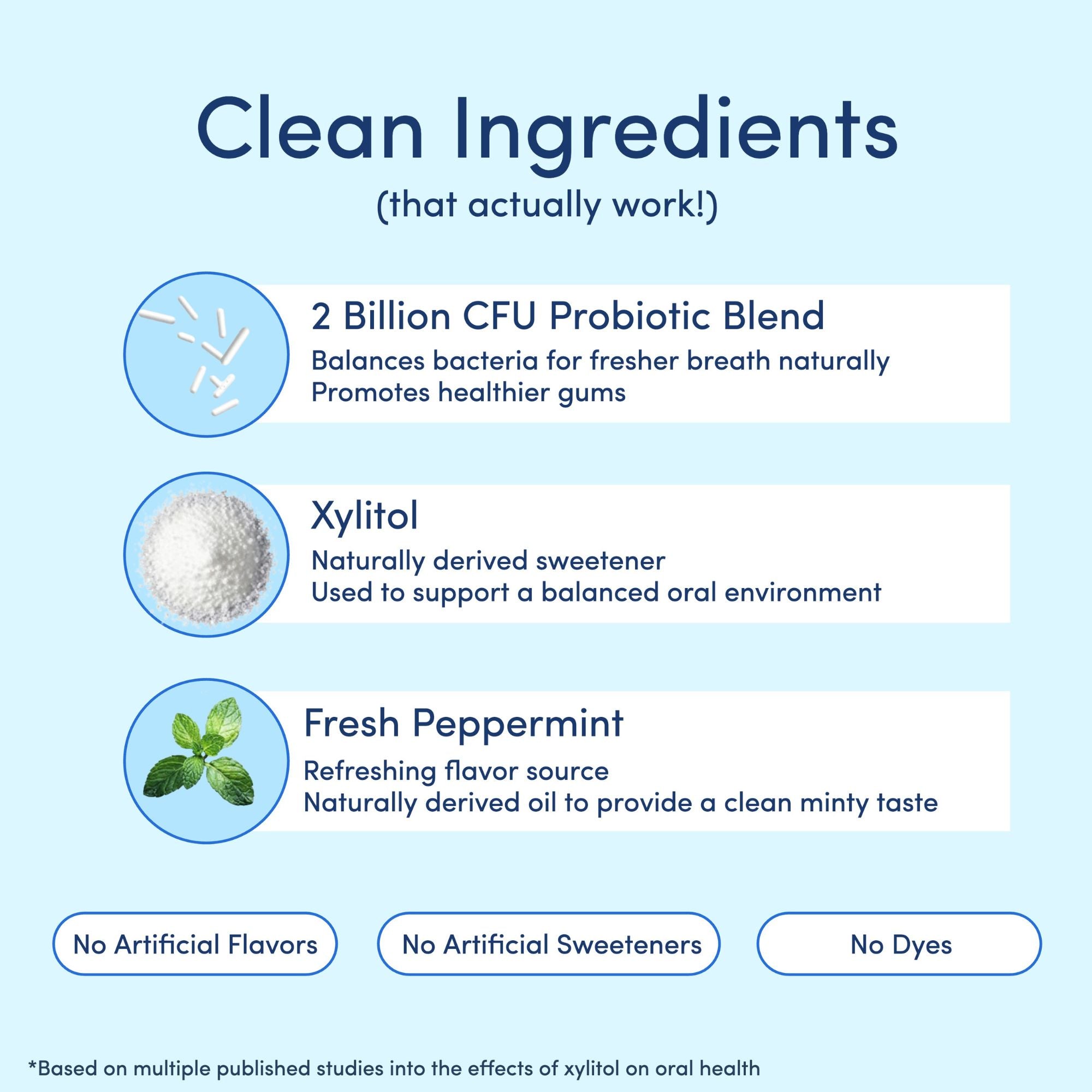 These aren't just mints—they're packed with good bacteria that crowd out the bad guys, supporting gum health and helping maintain inflammation over time. Fresh breath with benefits.